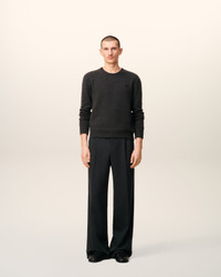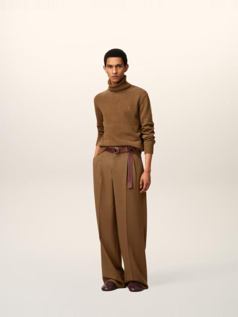 Low waist two pleats wide trousers in wool tricotine. Wide fit Low waist Zipped fly Horn buttons Buttoned back pockets "ami" waistband 2 adjustable tabs on side with metal buckle engraved ami V detail on the back Front pleats Front lining to knees 31 cm bottom leg width (size 40) Made in Romania (with love) REF: HTR812.WV0067.020 SIZE & FIT This item is designed to be worn lose. Take your normal size. Model is 182,5 cm / 5"11 and is wearing a size 40. COMPOSITION & CARE GUIDE Main Material : 100% New Wool Main Lining : 100% Polyester Pocket Lining : 65% Polyester 35% Cotton Do not wash Chlorine prohibited Do not tumble dry Cool iron Dry clean gentle
