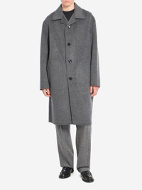 Wool and cashmere coat in grey color. Features classic collar, front button closure, two diagonal welt pockets on the front, one inside chest pocket with visible external stitching, embossed Ami de Coeur at the center back. Unlined style. Loose fit. The model is 190 cm tall and wears size L. More Info Product Number : 4575903 Product Code : HC0471WV0022055 The model is 190 cm tall and wears size L. Composition : 90% wool, 10% cashmere; pocket lining: 65% polyester, 35% cotton Made in: China