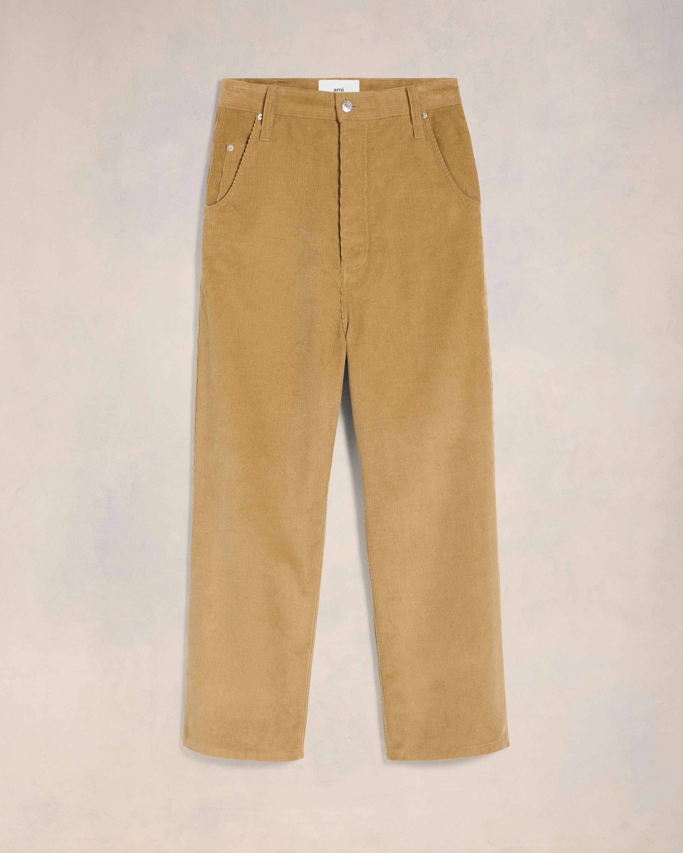 Baggy fit trousers in corduroy velvet. Baggy fit 27,5 cm bottom leg width (Size M) Low waist Low crotch 5 pockets Buttoned fly Metal studs and buttons in nickel color "ami alexandre mattiussi" patch on the back Made in Portugal (with love) REF : HTR102.CO0089.255 SIZE & FIT Fits true to size. Take your normal size. Model is 1m85 / 6'1" and is wearing a size M. COMPOSITION & CARE GUIDE 100% Cotton Machine wash at 30°C gentle Chlorine prohibited Do not tumble dry Cool iron Dry clean possible