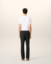 Elasticated waist trousers in light wool flannel. Straight fit Zipped fly Side pockets Back piped pockets with buttons Horn buttons Elasticated belt with button inside Internal waist drawstring 20 cm bottom leg width (size 40) Made in Tunisia (with love) REF: HTR226.WV0066.020 SIZE & FIT Fits true to size. Take your normal size. Model is 188 cm / 6"2 and is wearing a size M. COMPOSITION & CARE GUIDE Main Material : 100% New Wool Pocket Lining : 65% Polyester 35% Cotton Do not wash Chlorine prohibited Do not tumble dry Cool iron Dry clean gentle