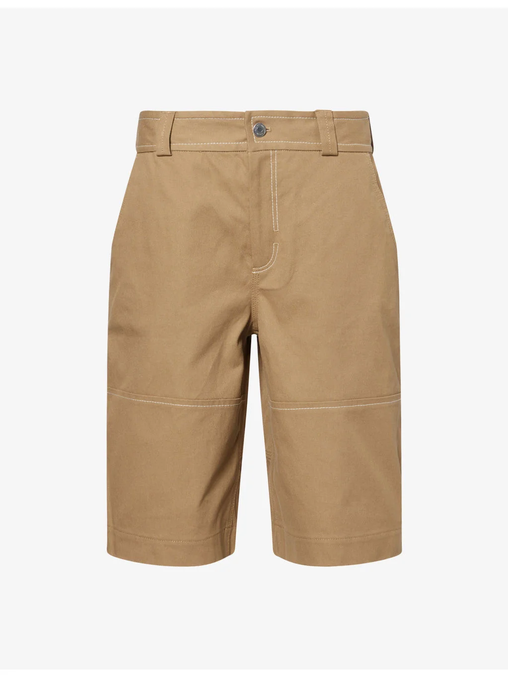 PRODUCT DETAILS - AMI Paris cotton shorts - 100% cotton - Button and zip-fly fastening - Regular fit, wide leg, mid-rise, belt loops, slip pockets at sides, patch pockets at back, contrast stitching, leather patch at back - Dry clean - Made in Romania - Size medium: rise 14in / 35.5cm, inside leg 13in / 33cm, leg opening 26in / 66cm - Model is 6ft 2in/1.88m and wears a size medium - Midweight, non-stretch Ref: R04577055