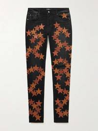 AMIRI keeps gaining fans because of how well its jeans fit - not to mention how cool the designs are. Made in collaboration with fellow LA brand Chemist, this skinny pair is hand-distressed and appliquéd with orange leather stars. Size & Fit - Fits true to size - Those with muscular legs may wish to take the next size up - Skinny leg, mid-rise style - Mid-weight, slightly stretchy fabric - Model wears a 30 - Model measures: waist size 30, height 6'0"/ 183cm Details & Care - Black stretch-denim, tonal-orange leather (Sheep) - Button fastenings - 92% cotton, 6% elastomultiester, 2% elastane - Dry clean - Designer wash: Aged Black