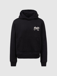 Pullover cotton hoodie. Fixed hood. Distressed embroidered logo text and number at chest and back. Kangaroo pocket at front. Ribbed cuffs and hem. - 100% Cotton SKU: SS23MJG007-001