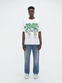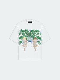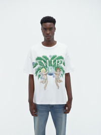 ANGELS AND PALM FOLIAGE RECALL VISIONS OF CALIFORNIA ON THIS COTTON TEE. CROWNED WITH THE AMIRI LOGO AND ORNAMENTED WITH CRYSTALS, THIS RELAXED-FIT TEE IS EMBELLISHED ON THE BACK WITH AIRBRUSH GRAPHICS THAT HONOR THE HOUSE'S HOME STATE. SPRING-SUMMER 2024 COLLECTION MADE IN ITALY 100% COTTON DRY CLEAN
