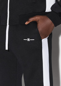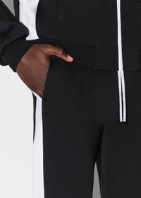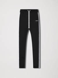 ALWAYS ON POINT TRACK PANTS IN BLACK MADE IN ITALY COTTON MODEL HEIGHT 6' 2", 28" WAIST, 34" INSEAM AND IS WEARING SIZE US MEDIUM 98% COTTON, 2% ELASTANE DRY CLEAN RECOMMENDED