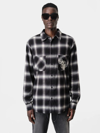FOR AUTUMN-WINTER 2024, CLASSIC FLANNEL SHIRTING IS REANIMATED WITH GRAPHICS THAT CELEBRATE THE TIMELESS ALLURE OF OLD HOLLYWOOD. THE AMIRI SWIRL FLANNEL SHIRT FEATURES LOGO EMBROIDERY AND APPLIQUE AND IS FINISHED WITH BUTTON CUFF AND BUTTON-DOWN CLOSURE. AUTUMN-WINTER 2024 COLLECTION MADE IN USA 100% COTTON STYLE:AMSTFL1008-001 SIZE & FIT MODEL IS WEARING SIZE "M" MODEL MEASUREMENTS: HEIGHT: 5'10 CHEST: 32" WAIST: 23.5" HIP: 34.5" PRODUCT MEASUREMENTS: CHEST: 46" SHOULDER: 18.5" LENGTH: 30.25" SLEEVE LENGTH: 26.5"