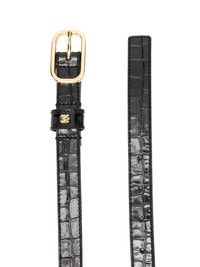 crocodile-embossed buckle belt Highlights - Black - Crocodile embossing - Gold-tone buckle - Logo plaque Made in Italy Composition Crocodile Embossed Leather 100% SIZE & FIT Measurement Maximum Length 35.43 in(90 cm) Minimum Length 33.46 in(85 cm) WIDTH 0.78 in(2 cm)