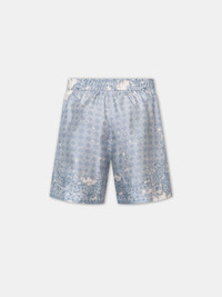 FOR PRE-FALL 2025, THE HOUSE'S SIGNATURE BANDANA PRINT APPEARS IN A SUN-SOAKED BLEACH EFFECT. THE BLEACH BANDANA SHORT IS FINISHED WITH SIDE POCKETS AND AN ELASTIC WAIST WITH DRAWCORD. PRE-FALL 2025 COLLECTION MADE IN ITALY 100% SILK THIS GARMENT HAS UNDERGONE A SPECIAL PROCESS WHICH RESULTS IN INTENTIONAL VARIATIONS OF SHADING AND COLOR, AND ADD TO THE PIECE'S UNIQUE CHARACTERISTICS. THIS MAY LEAD TO BLEEDING OR DYE TRANSFER. PLEASE USE CAUTION WHEN WASHING OR DRY-CLEANING THIS ITEM STYLE:AMSHCA1106-856 SIZE & FIT MODEL IS WEARING SIZE M MODEL MEASUREMENTS: HEIGHT: 6’2” CHEST: 35.5" WAIST: 28" HIP: 34.5" PRODUCT MEASUREMENTS (SIZE M): WAIST: 29.5" RISE: 12" HIP: 47" INSEAM: 6.25"