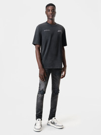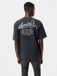 FOR AUTUMN-WINTER 2024 MENSWEAR, AMIRI CINEMAS IS INTRODUCED AS A FICTIONALIZED VENUE DEPICTED IN VINTAGE-INSPIRED GRAPHICS. THE AMIRI CINEMAS VINTAGE TEE FEATURES THE SEASONAL LOGO ON THE FRONT AND BACK AND IS FINISHED WITH DISTRESSING ON COLLARS, CUFFS, AND HEM FOR A WELL-WORN EFFECT. AUTUMN-WINTER 2024 COLLECTION MADE IN ITALY 100% COTTON