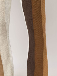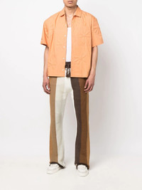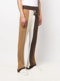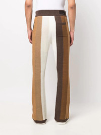 striped straight-leg trousers coffee brown/caramel brown/off-white linen straight leg knitted construction vertical stripe pattern high waist elasticated drawstring waistband Imported Composition Linen/Flax 100% SIZE & FIT Model measurements Height 6 ft 2 in(1.89 m) Bust/Chest 36.22 in(92 cm) Hips 37.79 in(96 cm) Waist 29.52 in(75 cm) FittingInformation This piece fits true to size. We recommend you get your regular size Designed for a slim fit at the waist and through the thigh, loose from the knee Made with a mid-weight fabric