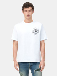 PRE-SPRING 2026 HONORS THE HOUSE'S ORIGINS IN L.A.'S RENEGADE SCENE WITH MOTORCYCLE GRAPHICS MADE IN THE SPIRIT OF PAST ERAS. THE AMIRI HOLLYWOOD TEE IN COTTON IS ILLUSTRATED WITH SEASONAL LOGO GRAPHICS ON FRONT AND BACK. PRE-SPRING 2026 COLLECTION MADE IN ITALY 100% COTTON THIS GARMENT HAS UNDERGONE A SPECIAL PROCESS WHICH RESULTS IN INTENTIONAL VARIATIONS OF SHADING AND COLOR, AND ADD TO THE PIECE'S UNIQUE CHARACTERISTICS. THIS MAY LEAD TO BLEEDING OR DYE TRANSFER. PLEASE USE CAUTION WHEN WASHING OR DRY-CLEANING THIS ITEM STYLE:AMTOJR1009-100 SIZE & FIT MODEL MEASUREMENTS: HEIGHT: 6’2” CHEST: 35.5" WAIST: 28" HIP: 34.5" PRODUCT MEASUREMENTS (SIZE M): CHEST: 22" SHOULDER: 18.5" LENGTH: 28" SLEEVE LENGTH: 10"