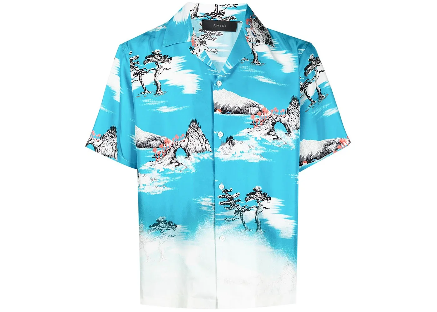 AMIRI Faded Aloha Silk Shirt Cyan Blue