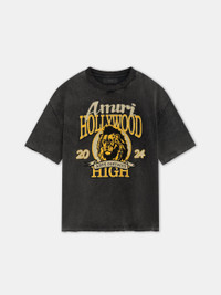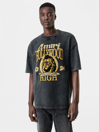 THE AUTUMN-WINTER 2024 COLLECTION WEAVES TOGETHER COLLEGIATE ICONOGRAPHY WITH CINEMATIC VISUAL CUES. THE AMIRI HIGH LION SKATER TEE IS ILLUSTRATED WITH THE SEASON'S LION GRAPHIC IN A VINTAGE-INSPIRED DISTRESSED TREATMENT. AUTUMN-WINTER 2024 COLLECTION MADE IN ITALY 100% COTTON