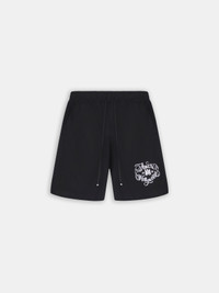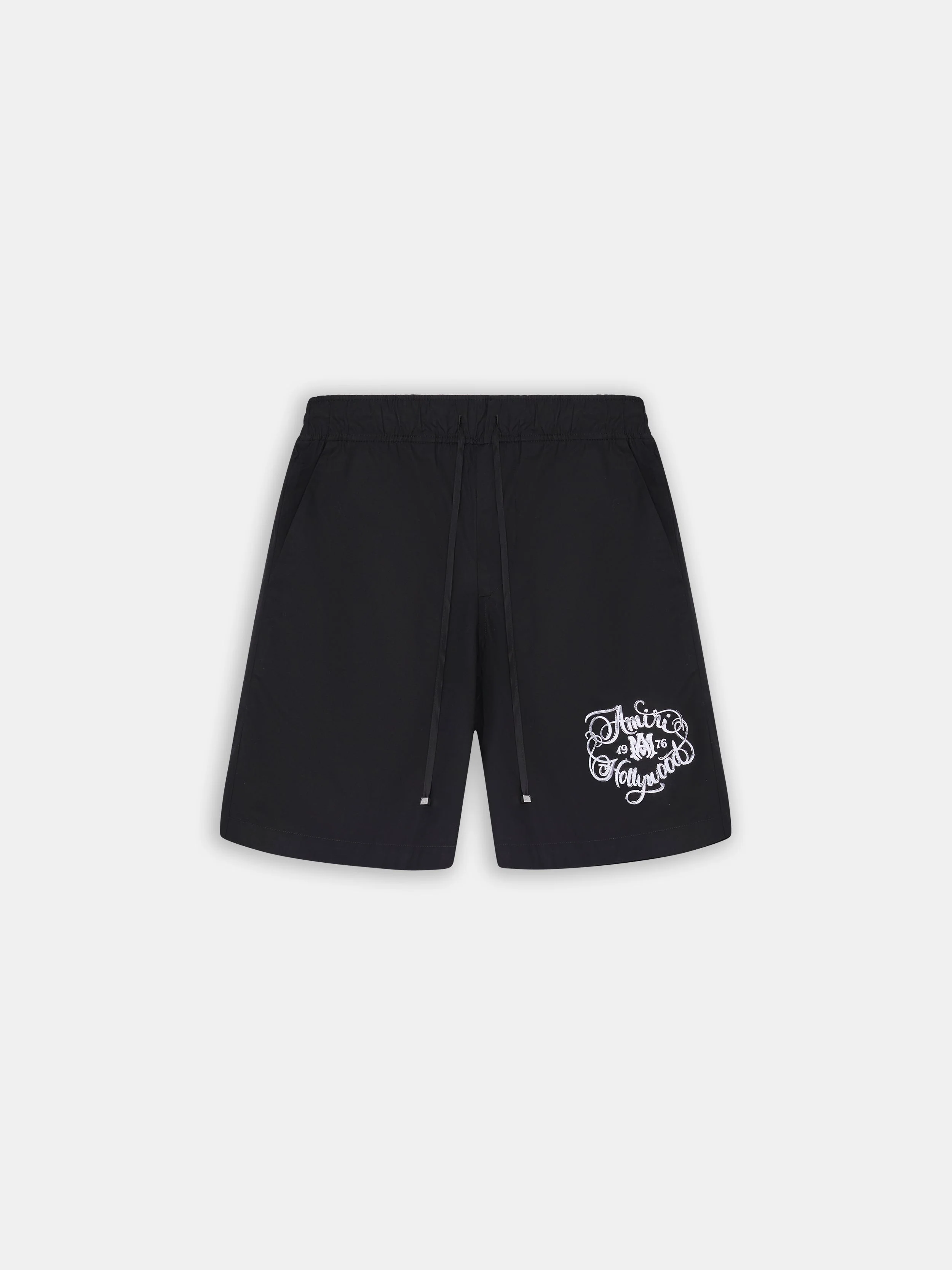 PRE-SPRING 2026 HONORS THE HOUSE'S ORIGINS IN L.A.'S RENEGADE SCENE WITH MOTORCYCLE GRAPHICS MADE IN THE SPIRIT OF PAST ERAS. THE AMIRI HOLLYWOOD SHORT IN SILK IS DESIGNED WITH SIDE SEAM POCKETS AND AN ELASTIC WAISTBAND WITH DRAWCORD. PRE-SPRING 2026 COLLECTION MADE IN ITALY 100% SILK THIS GARMENT HAS UNDERGONE A SPECIAL PROCESS WHICH RESULTS IN INTENTIONAL VARIATIONS OF SHADING AND COLOR, AND ADD TO THE PIECE'S UNIQUE CHARACTERISTICS. THIS MAY LEAD TO BLEEDING OR DYE TRANSFER. PLEASE USE CAUTION WHEN WASHING OR DRY-CLEANING THIS ITEM STYLE:AMBMSO1062-001 SIZE & FIT MODEL MEASUREMENTS: HEIGHT: 6’1" CHEST: 36" WAIST: 27" HIP: 34.5" PRODUCT MEASUREMENTS (SIZE M): WAIST: 30" RISE: 13" HIP: 41.5" INSEAM: 9"