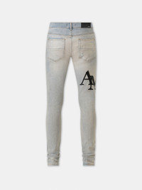 THESE SKINNY-FIT JEANS ARE ARTFULLY WASHED AND ABRADED IN THE SPIRIT OF WELL-WORN VINTAGE DENIM. ADORNED WITH THE SEASON'S STAGGERED AMIRI LOGO EMBROIDERY, THESE JEANS MADE FROM ITALIAN STRETCH DENIM ARE FINISHED WITH CLASSIC FIVE-POCKET CONSTRUCTION. CORE COLLECTION MADE IN USA DRY CLEAN ONLY THIS GARMENT HAS UNDERGONE A SPECIAL PROCESS WHICH RESULTS IN INTENTIONAL VARIATIONS OF SHADING AND COLOR, AND ADD TO THE PIECE'S UNIQUE CHARACTERISTICS. THIS MAY LEAD TO BLEEDING OR DYE TRANSFER. PLEASE USE CAUTION WHEN WASHING OR DRY-CLEANING THIS ITEM. STYLE:AMDNSY1114-531