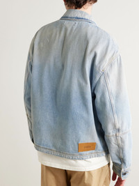 Logo-Appliquéd Distressed Denim Jacket Blue