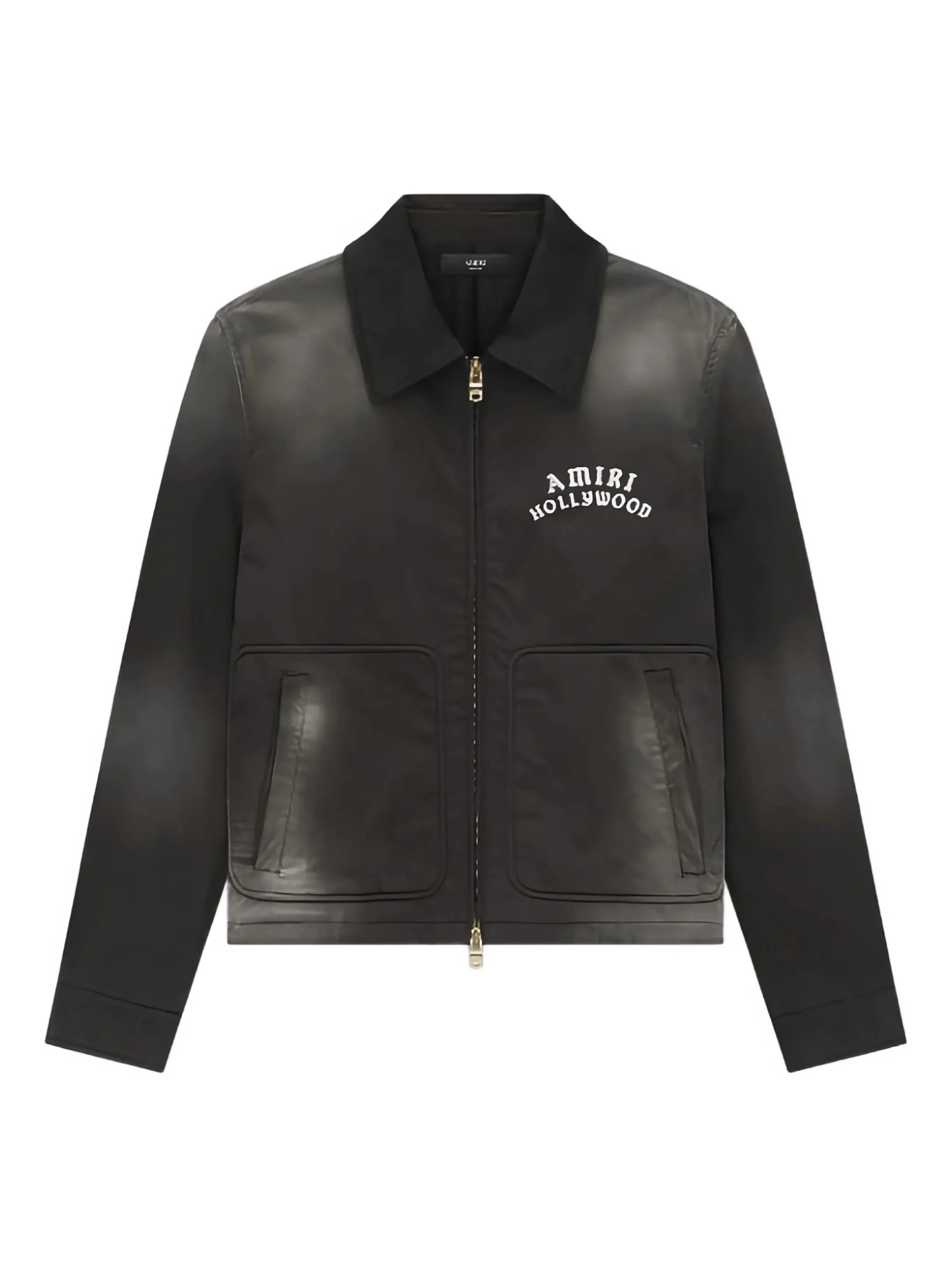 black faded effect zip fastening collared neckline welt pockets logo detail - Color: BLACK - Made in: Italy - Designer Style ID: AMOUBN1090 BLACK Composition and care Cotton: 92.0%, Polyurethane: 5.0%, Elastane: 3.0%