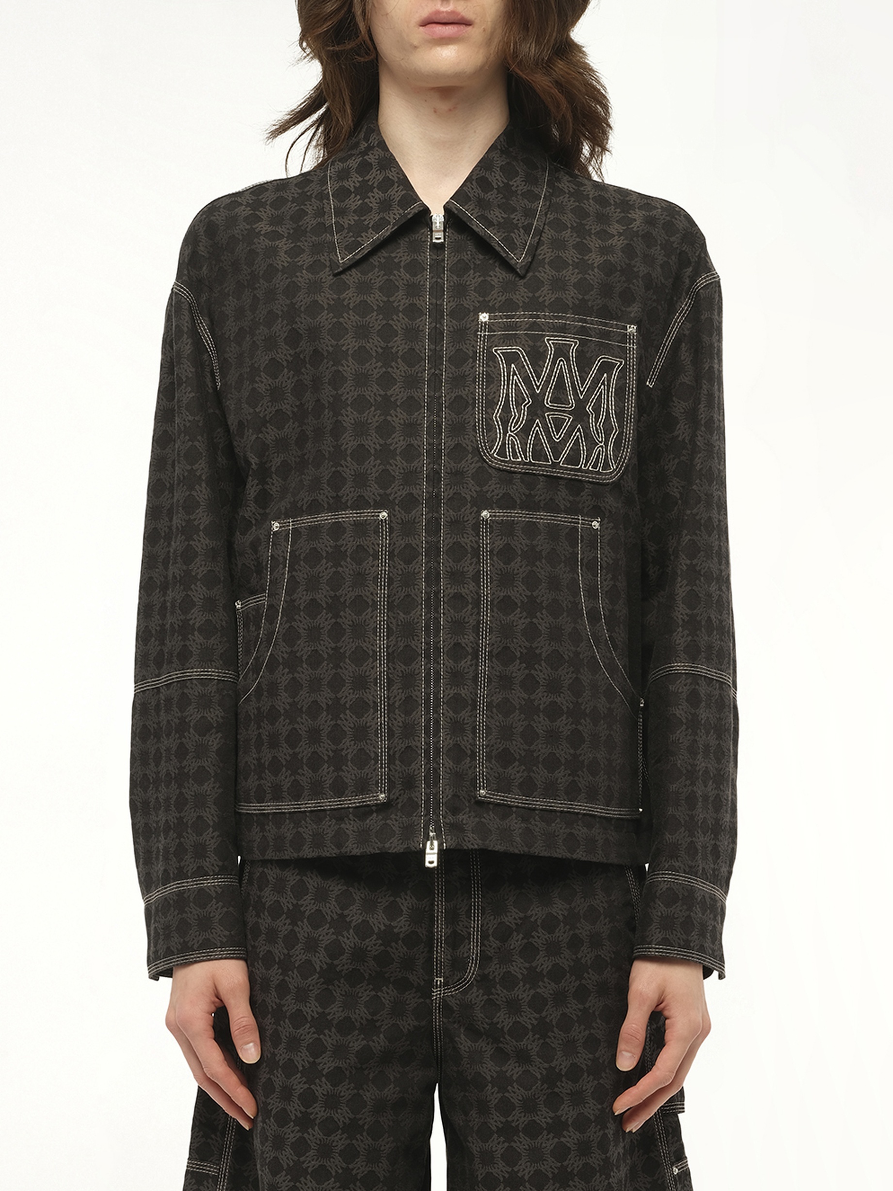 AMIRI's MA Quad Work Jacket in Black is a stylish and versatile piece that combines functionality with a modern aesthetic. Perfect for any occasion, this jacket is a must-have addition to your wardrobe. - Composition: 82% Cotton 18% Linen - Classic workwear-inspired design - Durable construction for long-lasting wear - Multiple pockets for practicality - Adjustable cuffs for a tailored fit - Signature AMIRI detailing Model is 187 cm and wears size 48 SKU: AMOUBN1086 001