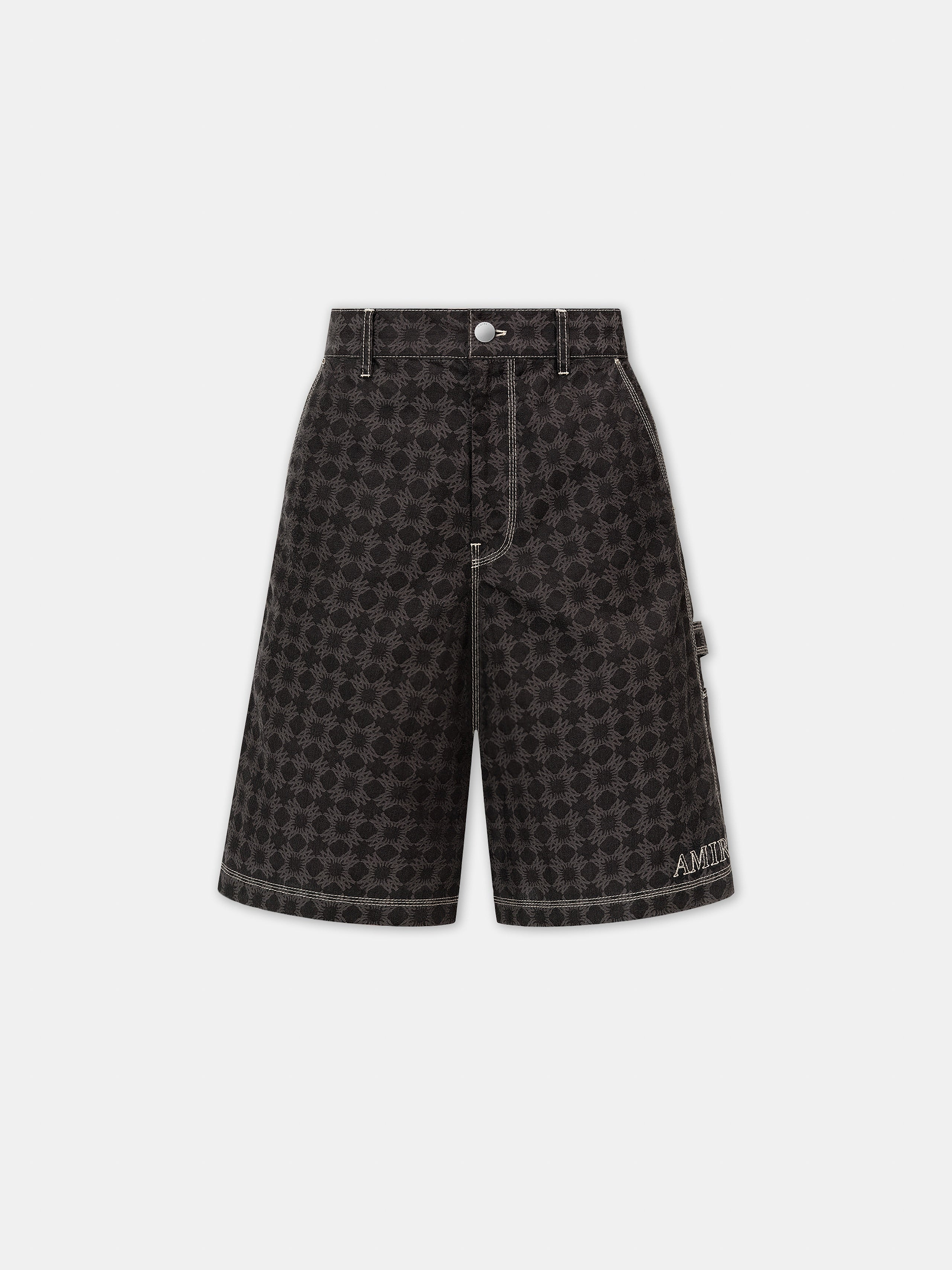 CUSTOM-WOVEN MA QUAD MONOGRAM PRINT ILLUSTRATES TIME-HONORED WORKWEAR SILHOUETTES FOR PRE-FALL 2025 MENSWEAR. THE MA QUAD WORK SHORT IN COTTON-LINEN IS DETAILED WITH CONTRAST TOPSTITCHING, A HAMMER LOOP, AND THE EMBROIDERED HOUSE LOGO. PRE-FALL 2025 COLLECTION MADE IN ITALY 82% COTTON, 18% LINEN THIS GARMENT HAS UNDERGONE A SPECIAL PROCESS WHICH RESULTS IN INTENTIONAL VARIATIONS OF SHADING AND COLOR, AND ADD TO THE PIECE'S UNIQUE CHARACTERISTICS. THIS MAY LEAD TO BLEEDING OR DYE TRANSFER. PLEASE USE CAUTION WHEN WASHING OR DRY-CLEANING THIS ITEM STYLE:AMSHCA1091-001 SIZE & FIT MODEL IS WEARING SIZE 46 MODEL MEASUREMENTS: HEIGHT: 6’2” CHEST: 35.5" WAIST: 28" HIP: 34.5" PRODUCT MEASUREMENTS (SIZE 46): WAIST: 31.5" RISE: 11" HIP: 39.875" INSEAM: 11.875"