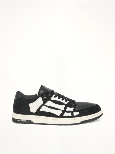 Amiri's Boucle Skeleton Low Top Sneaker in Black is a stylish and edgy footwear choice that combines luxury with a unique design. Perfect for those who want to make a bold statement, these sneakers offer both comfort and a distinctive look. - Composition: UPPER : 45% PL 21% VI 13% PA 11% WO 10% PC - Features a boucle texture for a unique aesthetic. - Low top design for versatile styling. - Signature skeleton motif for a standout appearance. - Lace-up closure for a secure fit. - Durable rubber sole for added traction. - Made in Vietnam SKU: AMFOSR1169 001