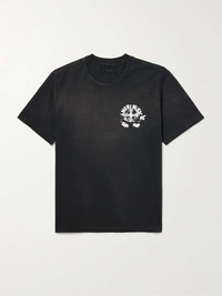 Based in Los Angeles, AMIRI draws from its hometown's entertainment scene. This printed T-shirt features a record label graphic, depicting a cartoon-style vinyl disc with hands and feet. It's cut from cotton-jersey for a slightly loose fit. Size & Fit - Fits true to size. Take your normal size - Designed for a relaxed fit - Mid-weight, slightly stretchy fabric - Model is shown wearing a S - Model measures: chest 36"/ 92cm, height 6'0"/ 183cm Details & Care - Black and white cotton-jersey - 100% cotton - Dry clean