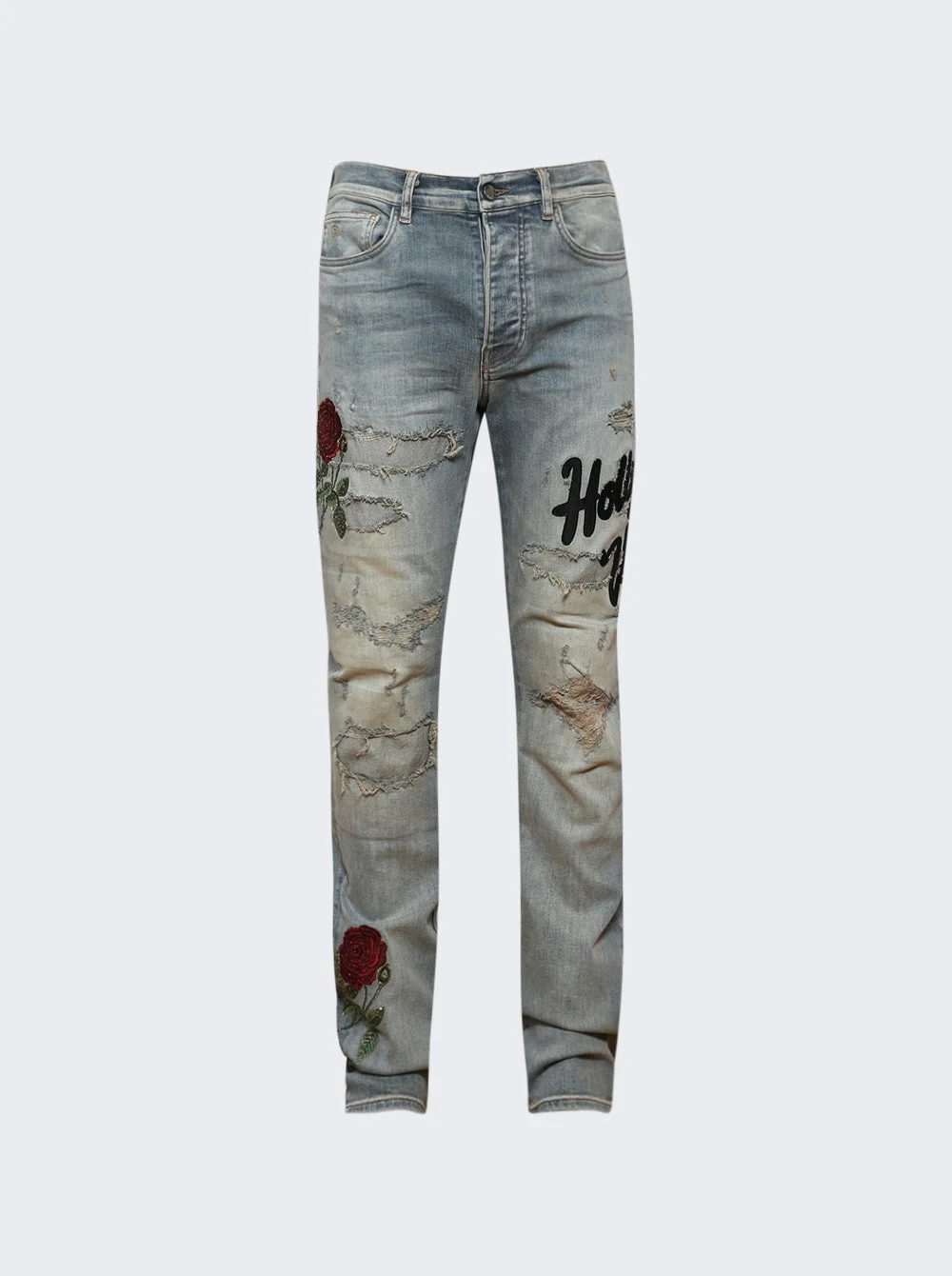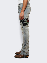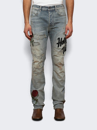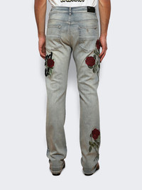 Floral Sequin Repaired Slim Jean Antique Indigo