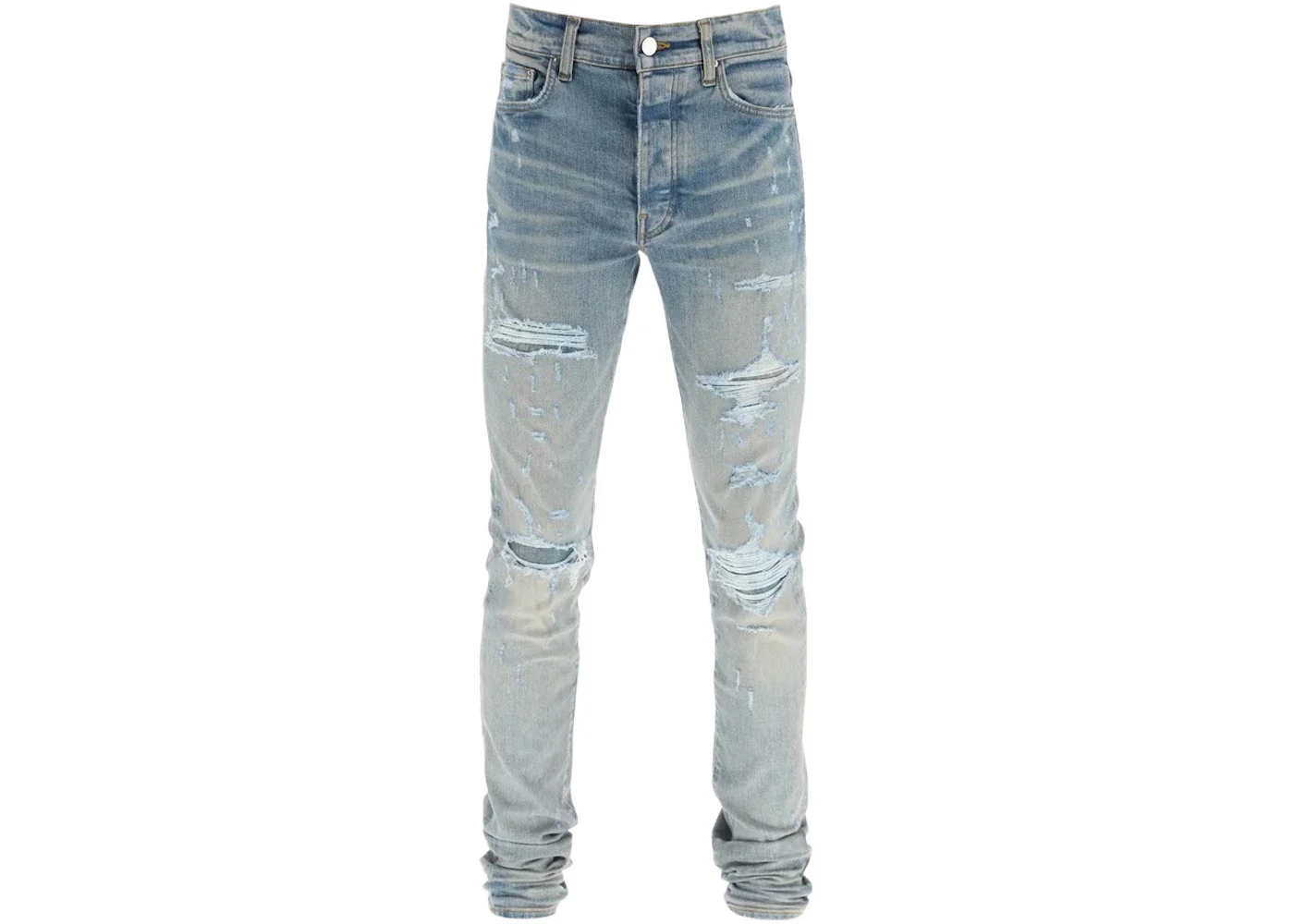 Elevate your denim game with the AMIRI Thrasher Plus Jeans in Clay Indigo. These premium jeans showcase AMIRI's signature blend of luxury and streetwear aesthetics. Crafted from high-quality denim, the Clay Indigo colorway offers a versatile and stylish option for your wardrobe. The Thrasher Plus design features a comfortable fit and expert detailing, making these jeans a standout piece for any fashion-forward individual.The AMIRI Thrasher Plus Jeans boast a unique distressed look, carefully created to add character and edge to your outfit. The clay indigo hue provides a rich, lived-in appearance that pairs effortlessly with a variety of tops and footwear. With their superior construction and attention to detail, these jeans offer both style and durability for long-lasting wear. Our team thinks this product is great for those seeking a perfect balance between high-end fashion and casual cool, making it an essential addition to any contemporary wardrobe. - Season FW22 - Color Clay Indigo - Style XMD005-408 - Featured false - Uploaded By NB