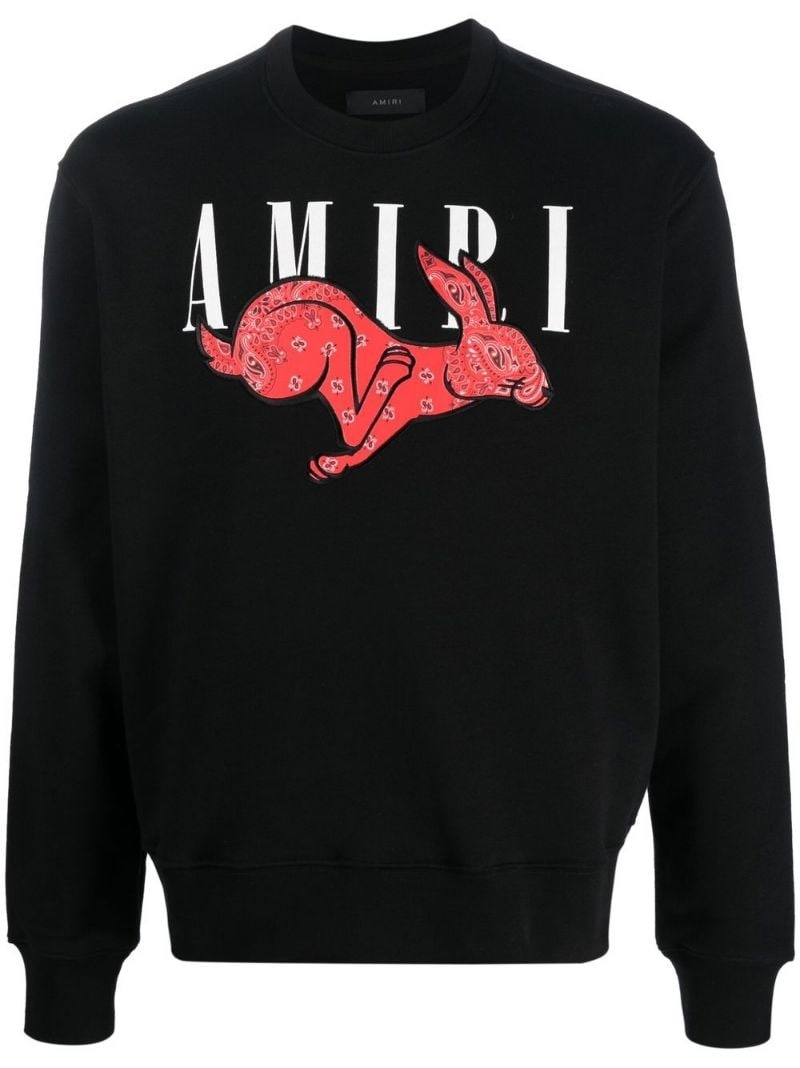 appliqué detail logo-print sweatshirt appliqué detail logo-print sweatshirt from AMIRI featuring black, cotton, logo print at the chest, appliqué detail, paisley print, round neck, long sleeves, elasticated cuffs and elasticated hem. Made in Italy Composition Cotton 100% SIZE & FIT Model measurements Height 6 ft 1 in(1.86 m) Bust/Chest 37 in(94 cm) Hips 37 in(94 cm) Waist 28.7 in(73 cm) FittingInformation This piece fits true to size. We recommend you get your regular size Cut for a relaxed fit Made with a mid-weight fabric