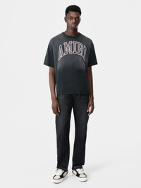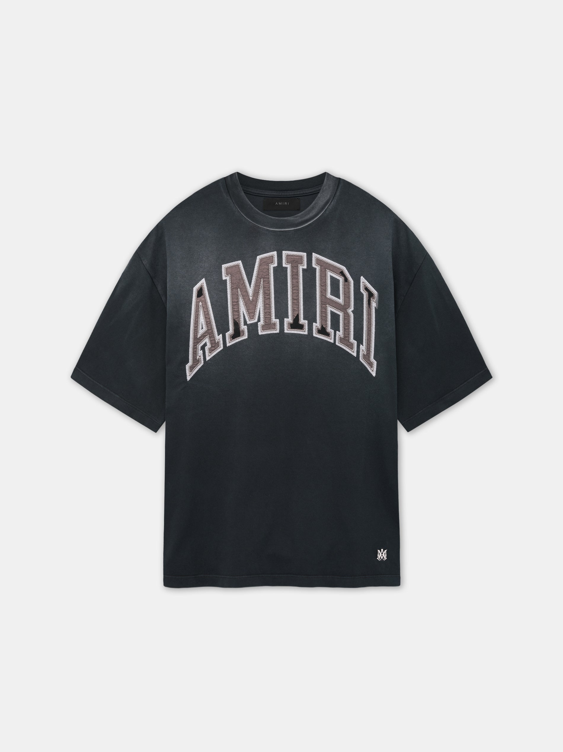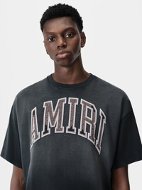 THE PRE-FALL 2024 MENSWEAR COLLECTION FORGES NEW, INNOVATIVE TECHNIQUES TO CREATE DISTINCTIVE TONAL COLORING. THE AMIRI VINTAGE OVERSIZED TEE IS DESIGNED IN A GENEROUS FIT AND ILLUSTRATED WITH PATCH APPLIQUE OF THE SEASON'S VARSITY LOGO, WHICH IS THEN HAND-DISTRESSED FOR A TIMEWORN EFFECT. PRE-FALL 2024 COLLECTION MADE IN ITALY 100% COTTON