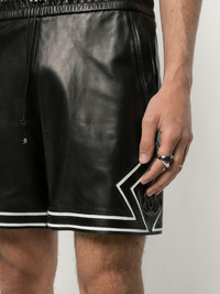 applique-logo leather shorts black/white lamb skin applique logo contrasting trim elasticated drawstring waistband two side inset pockets rear patch pocket above-knee length Made In Italy Composition Body: Lamb Skin 100% Washing instructions Specialist Cleaning