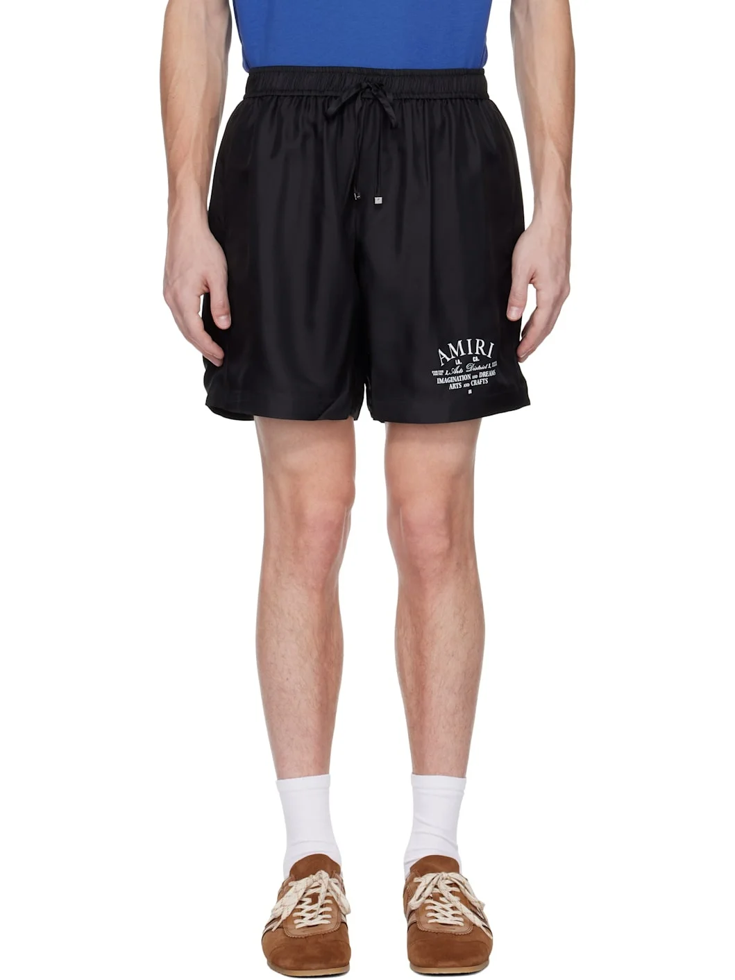 Silk satin shorts. · Drawstring at elasticized waistband · Two-pocket styling · Mock fly · Logo and text printed at leg · Logo-engraved silver-tone hardware Part of the Core collection. Supplier color: Black 100% silk. Made in Italy 252886M193023