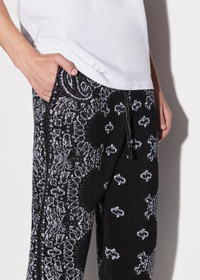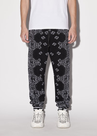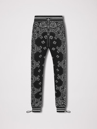 BANDANA JACQUARD KNIT SWEATPANTS EMBROIDERED M.A. LOGO AT THE LEFT LEG COTTON CASHMERE CROCHET BLEND MADE IN ITALY FITS TRUE TO SIZE MODEL WEARS A SIZE MEDIUM DETAILS & CARE TOGGLE DRAWSTRING WAIST 90% COTTON, 10% CASHMERE SPOT CLEAN ONLY