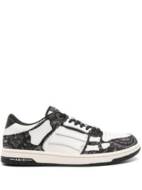 black/white calf leather denim pebbled texture bandana print front lace-up fastening panelled design contrasting branded heel counter logo patch at the tongue logo plaque perforated toebox almond toe branded insole rubber sole This piece comes complete with a protective dust bag. Size & Fit Model Measurements: Bust: 0cm Height: 0cm Hips: 0cm Waist: 0cm HEEL: 3cm Sole height: 2.5cm Fabric and Care Designer Style ID: AMFOSR1058 Designer Colour: 001 BLACK Composition: Sole: Rubber 100%; Outer: Calf leather 100%, Fabric 100%; Lining: Fabric 100%Made in Vietnam
