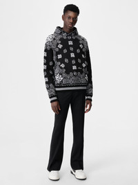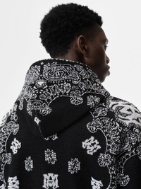 THE ICONIC BANDANA PRINT ILLUSTRATES RELAXED, EVERYDAY SILHOUETTES. THE COTTON KNIT BANDANA HOODIE FEATURES THE SCRIPT AMIRI LOGO, A SPACIOUS KANGAROO POCKET AND BANDED RIB FINISHES. CORE COLLECTION MADE IN ITALY 100% EGYPTIAN COTTON STYLE:AMKNHD1004-001 SIZE & FIT MODEL IS WEARING SIZE "M" MODEL MEASUREMENTS: HEIGHT: 6'3 CHEST: 34.5" WAIST: 29" HIP: 36" PRODUCT MEASUREMENTS: CHEST: 23" SHOULDER: 22.5" LENGTH: 27" SLEEVE LENGTH: 36" NORMAL FIT