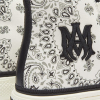 AMIRI’s bandana print has been a staple for the brand since it was founded in 2014, characterising tees, shorts and even these hi-tops. These Court sneakers are detailed with plenty of the L.A. label’s hallmarks, from the Americana nostalgia print across the uppers - to the monogram logo and embossed branding at the sole - for the ultimate AMIRI look. - Canvas Uppers - Heel Pull - Leather Details - Rubber Outsole