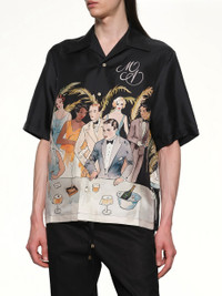 Amiri's Bar Scene Bowling Shirt in Black is a stylish and contemporary piece that captures the essence of modern fashion. Perfect for casual outings, this shirt combines comfort with a unique design. - Composition: 100% Silk - Features a striking bar scene graphic on the back. - Relaxed fit for a comfortable wear. - Button-up front with a classic collar. - Short sleeves for a laid-back look. - Black colorway for versatile styling. - Made in Italy Model is 187 cm and wears size M SKU: AMSTCA1192 001