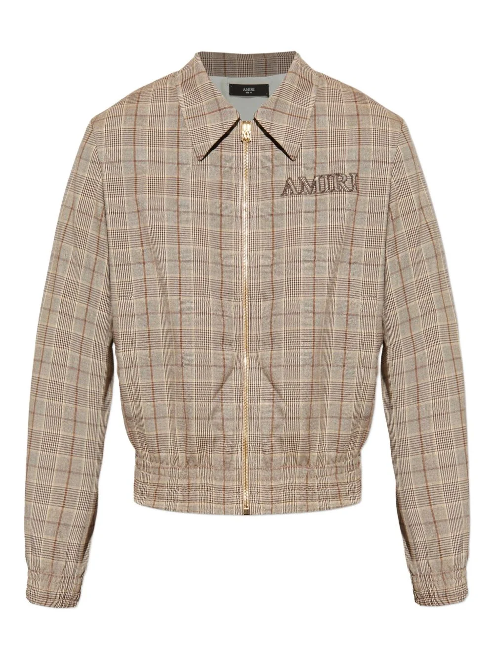 check-pattern embroidered-logo jacket Highlights - Brown - Checked pattern - Zip fastening - Embroidered logo - Elasticated hem - Long sleeves Made in Italy Composition Polyester 62%, Viscose 27%, Virgin Wool 10%, Elastane 1% Washing instructions Hand Wash