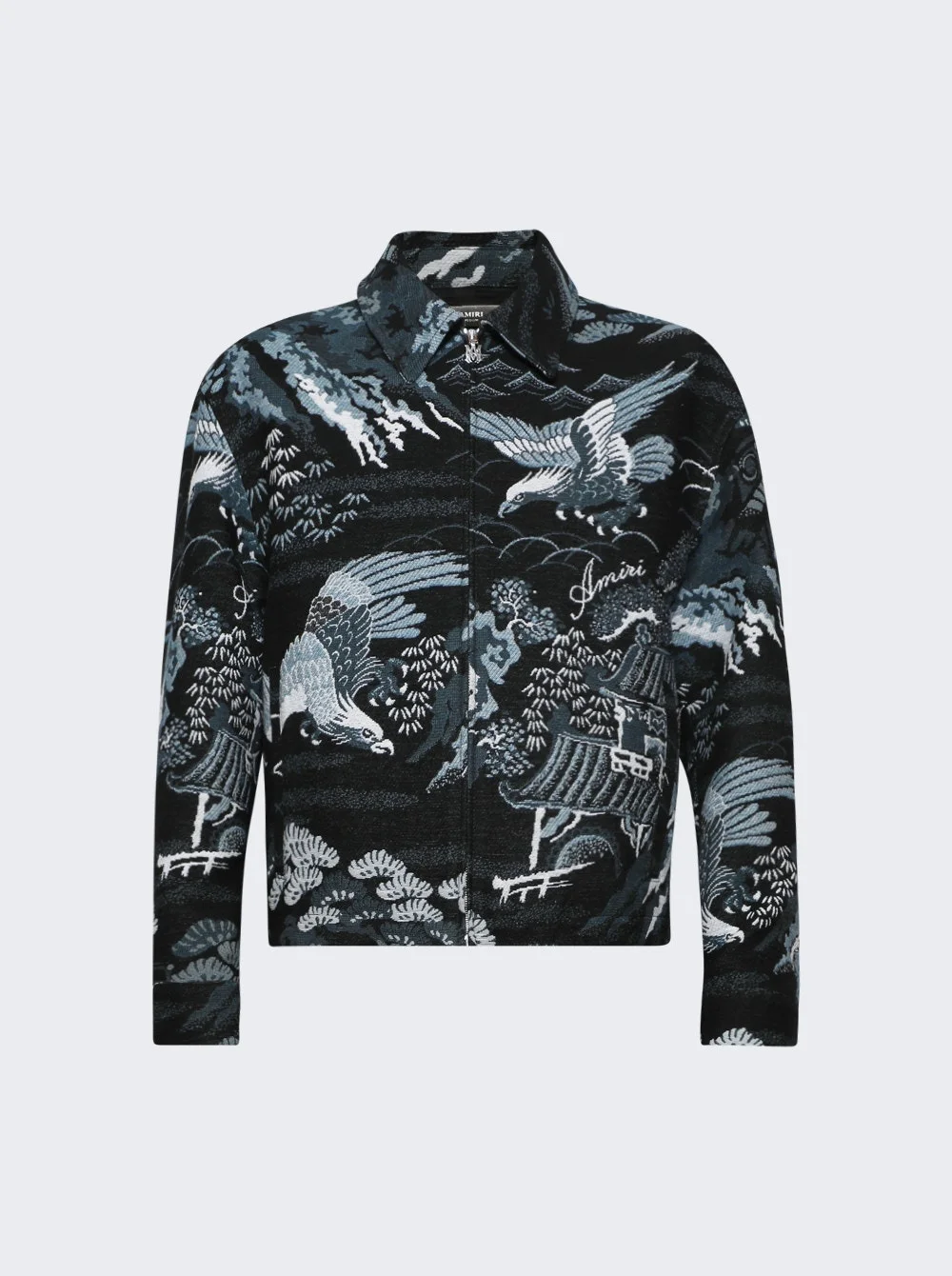 Details - Regular fit - Classic collar - Long sleeves - Side pockets - Zip closure - Bird motifs - Straight hem - Care according to label - Material: 37% Polyester, 44% Cotton, 14% Acrylic, 5% Other fibers Size Information: Vendor Color Code: Brand Style: AMTABN1003 Designer/Brand: AMIRI