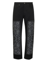 bandana-panel jeans Highlights - Black - Paisley pattern panels - Metal logo plate back pocket - Leather logo patch back waistband - Five-pocket model - Button closure Made in Italy Composition Cotton 100% Washing instructions Read Manufacturer Guidelines