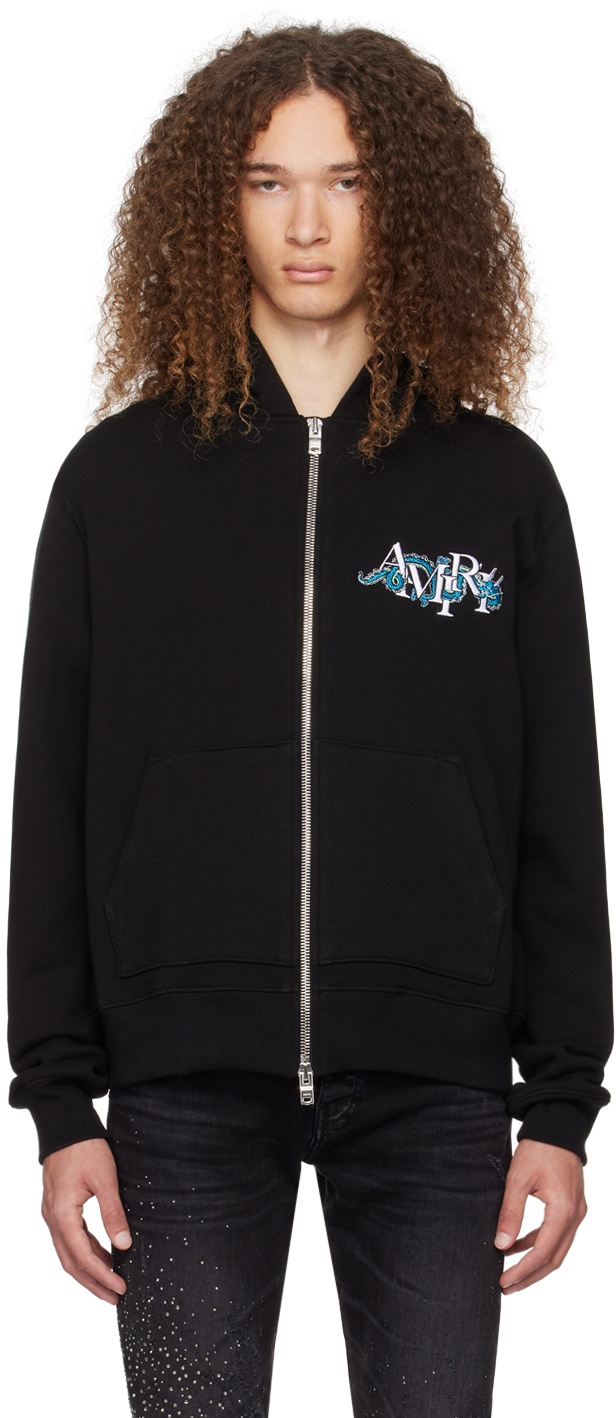 French terry hoodie. · Two-way zip closure · Logo graphic embroidered at chest and back · Patch pockets · Rib knit hem and cuffs · Logo plaque at back hem Supplier color: Black