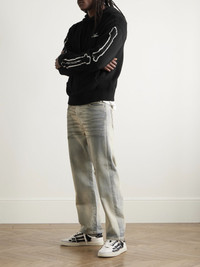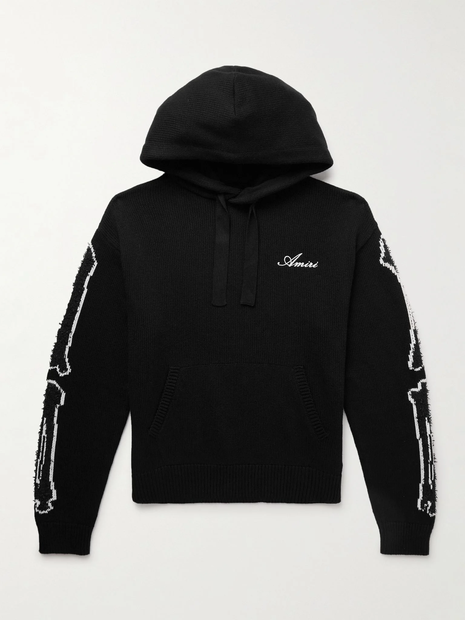 Bones Logo-Embroidered Intarsia-Knit Cotton-Blend Hoodie Black
