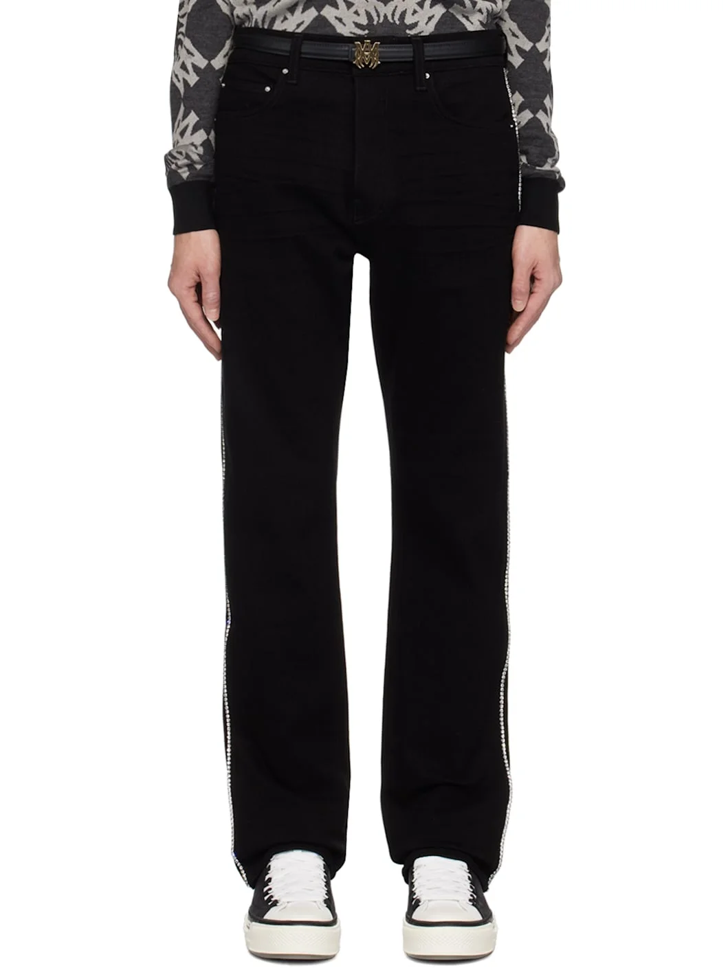 Stretch denim jeans. · Belt loops · Five-pocket styling · Button fly · Crystal-cut appliques at outseams · Jacron logo patch at back waistband · Logo plaque at back pocket · Logo-engraved silver-tone hardware Supplier color: Black 98% cotton, 2% elastane. Made in United States 242886M186079