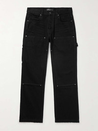 Modelled on utilitarian styles, AMIRI's 'Carpenter' jeans are made from panels of black denim secured by silver-tone studs. The relaxed-straight legs are finished with frayed hems. Size & Fit - Fits true to size. Take your normal size - Relaxed-straight leg, mid-rise style - Mid-weight, non-stretchy fabric - Model is shown wearing a 30 - Model measures: waist size 30, height 6'0"/ 183cm Details & Care - Black denim - Button fastenings - 100% cotton - Dry clean