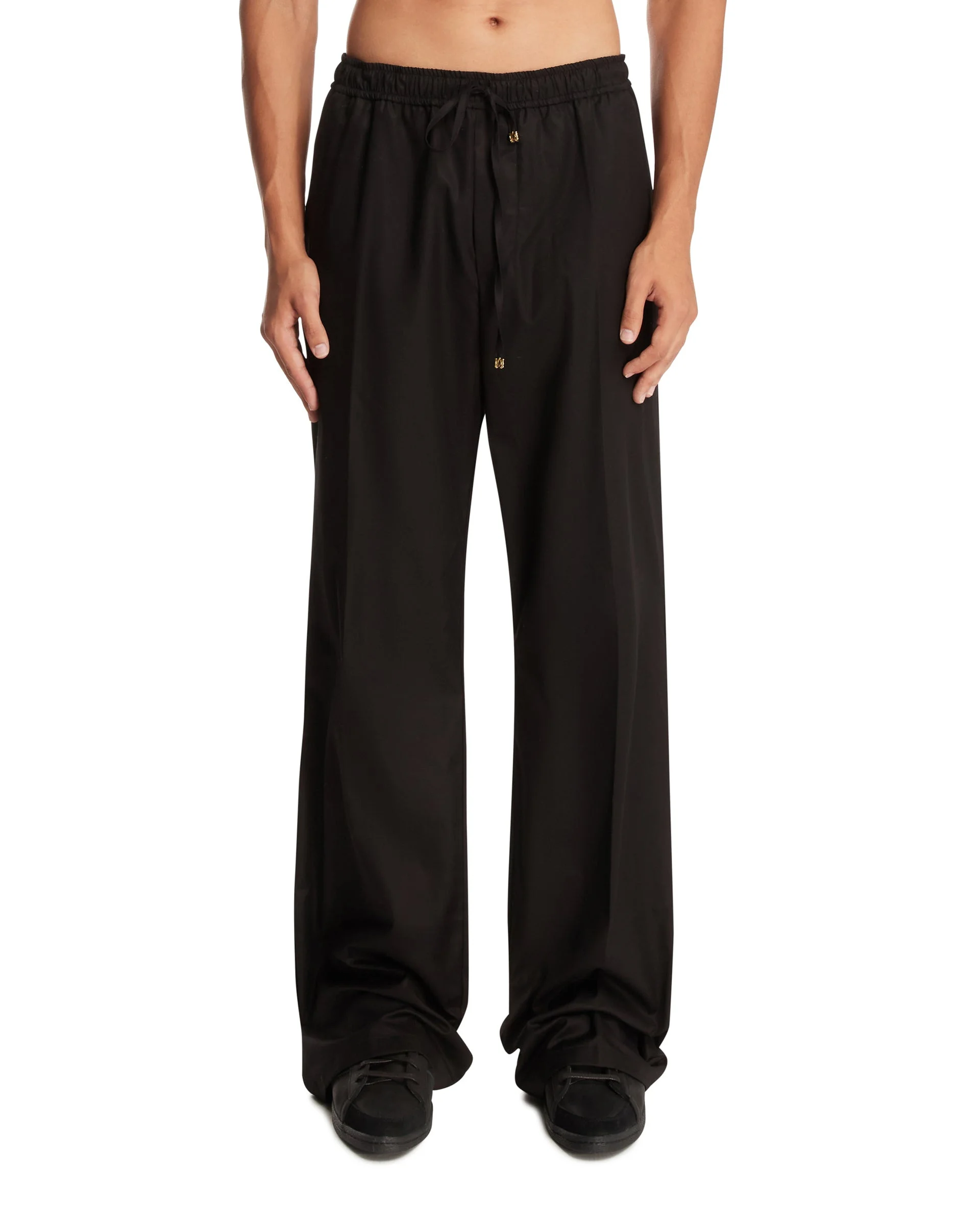Amiri Black Drawstring Pants. Black cotton fabric, elastic waistband with drawstring, low rise, wide leg, side pockets. Relaxed fit. Pedro is 185 cm and he is wearing size XL. DETAILS Model: AMPACA1047BLA Composition: 100% Cottton; Details: 100% Brass Made in: ITALY Season: FW25-26
