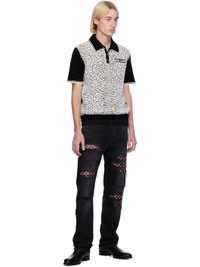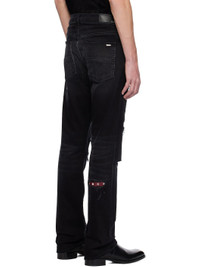 Slim-fit stretch denim jeans. Distressing, fading, and whiskering throughout. · Belt loops · Five-pocket styling · Leather logo patch at coin pocket · Button-fly · Logo-printed leather underlay at rips · Logo patch at back waistband · Logo plaque at back pocket Supplier color: Vintage black Body: 92% cotton, 6% elastomultiester, 2% elastane. Trim: 100% leather. Made in United States 251886M186043