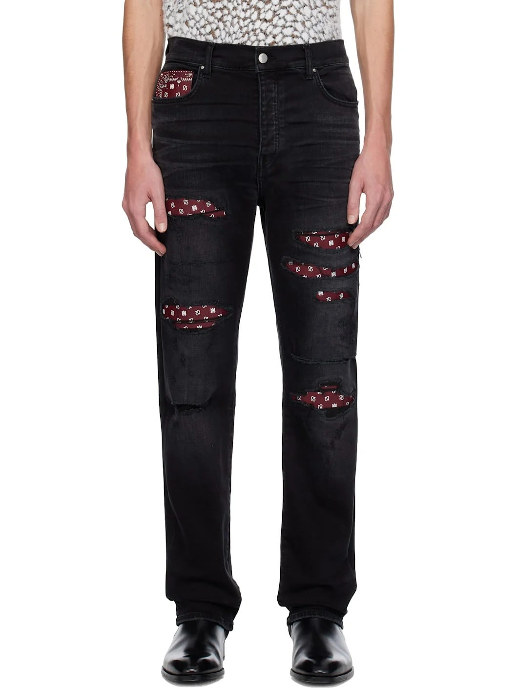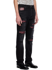 Black Leather Bandana Repaired Slim Jeans