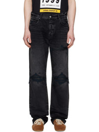 Non-stretch denim jeans. Fading and hand-distressing throughout. · Straight-leg · Belt loops · Five-pocket styling · Button fly · Rips with quilted leather underlay at front · Leather logo patch at back waistband · Logo hardware at back pocket · Silver-tone hardware Supplier color: Vintage black Body: 100% cotton. Trim: 100% leather. Made in United States 252886M186007