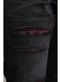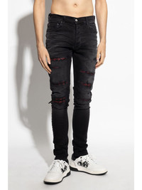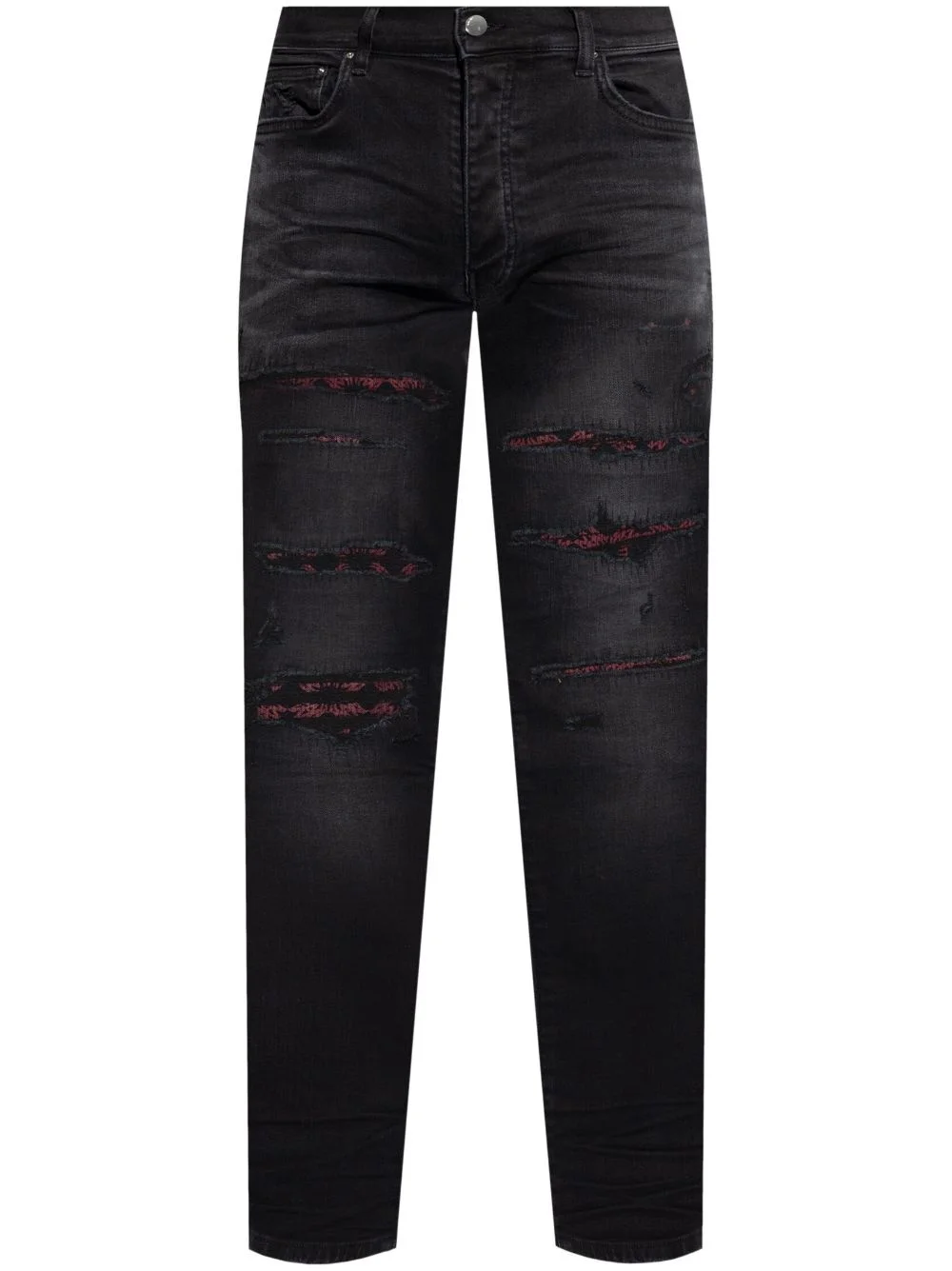 distressed bandana-detail jeans Highlights - Dark grey - Concealed fly and button fastening - Classic five pockets - Skinny cut Made in United States Composition Cotton 92%, Elastomultiester 6%, Elastane 2% SIZE & FIT FittingInformation Designed for a slim fit, these jeans offer a comfortable fit that sits just away from the leg Constructed from stretch denim, this piece offers a stretch fit with durability