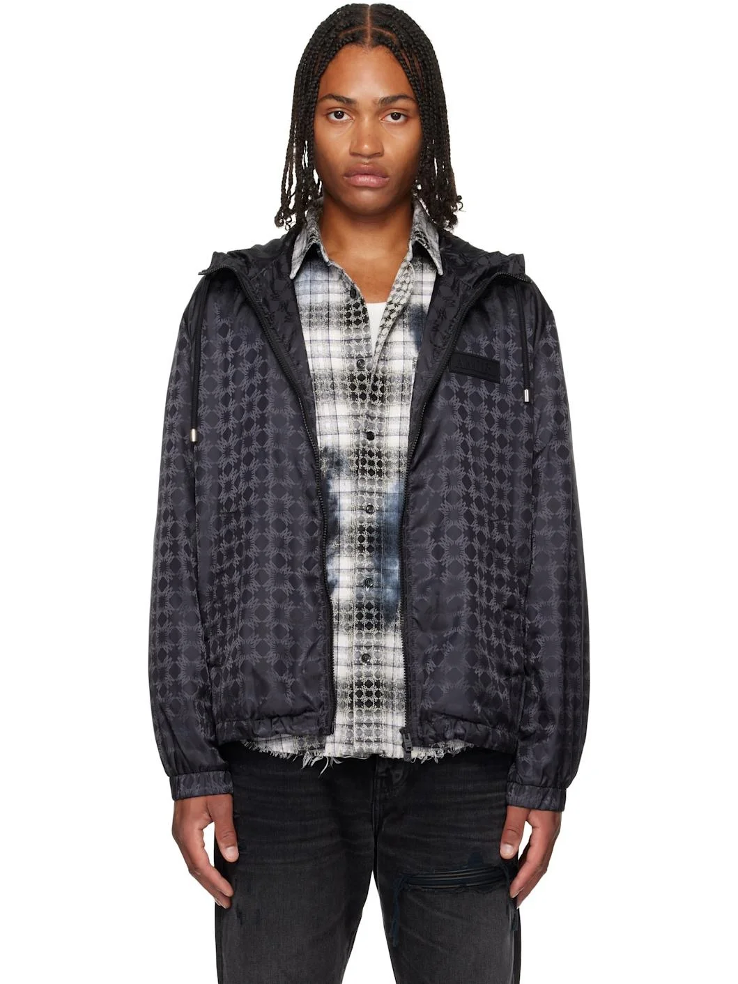 Taffeta jacket. · Logo pattern throughout · Drawstring at hood · Two-way zip closure · Logo patch at chest · Welt pockets at front · Cord-lock drawstring at hem · Elasticized cuffs · Mesh lining · Logo-engraved hardware Supplier color: Black Body: 100% polyamide. Lining: 100% polyamide. Made in Italy 252886M180005