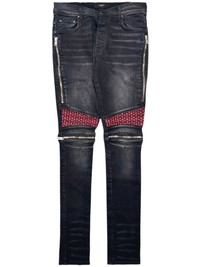 mid-rise straight-leg jeans Highlights - Black - Cotton blend - Stretch-design - Denim - Faded effect - Whiskering effect - Contrasting panel detail - Zip details - Mid-rise - Belt loops - Concealed fly and button fastening - Classic five pockets - Straight leg Made in United States Composition Cotton 92%, Polyester 6%, Elastane 2% Washing instructions Read Manufacturer Guidelines